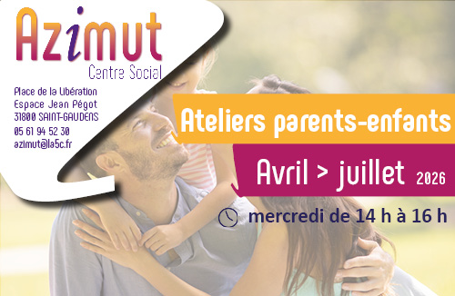 Du01avrilà01juil. Du 14:00 à 16:00 Centre social Azimut Place de la Libération, espace Pégot 31800 Saint-Gaudens Social Ateliers parents - enfants Cliquez ici pour télécharger le programme Choix du plan Fermer PrécédentRetour à la listeSuivant
